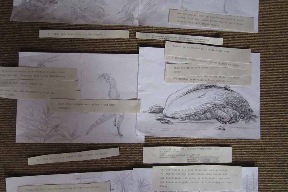 ...und gemeinsam schoben wir die einzelnen Teile der Geschichte und die fertigen Skizzen hin und her – wie man sieht, ist das wörtlich gemeint – bis alles zusammenpasste. (6/11)